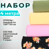 Набор ткани трикотаж масло 4 метра от бренда Ткани Плюс – идеальное решение для любителей шитья и рукоделия. Этот набор предназначен для создания уникальных аксессуаров для дома, изготовления кукол и игрушек. Отлично подходит для пошива одежды для взрослых и детей: футболок, платьев, юбок, брюк, туник, логсливов. Ткань изготовлена из комфортного и долговечного материала, состоящего из 90% полиэстера, 5% вискозы и 5% эластана, что обеспечивает ей отличные свойства: эластичность, мягкость и легкость в обращении. Средняя плотность тканей в наборе составляет 170-200 г на метр в квадрате. Ткань приятна для тела, хорошо драпируется, не мнется, не закатывается и не меняет цвет после стирки. В набор входят как однотонные, так и принтованные ткани, которые отлично сочетаются между собой, что позволяет создавать яркие и стильные изделия. Набор идеально подходит для тех, кто ценит качество и удобство в работе с тканями. Обратите пожалуйста внимание на то, что цвет ткани может незначительно меняться в зависимости от настроек Вашего экрана.